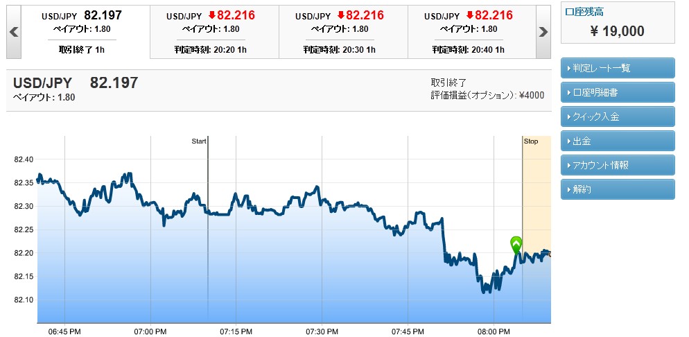 あとは判定時間にこの価格より下であれば、購入した1000円