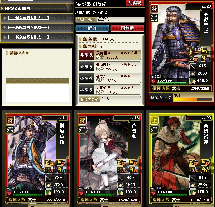 コスト2武将は☆20まで上げるつもりです